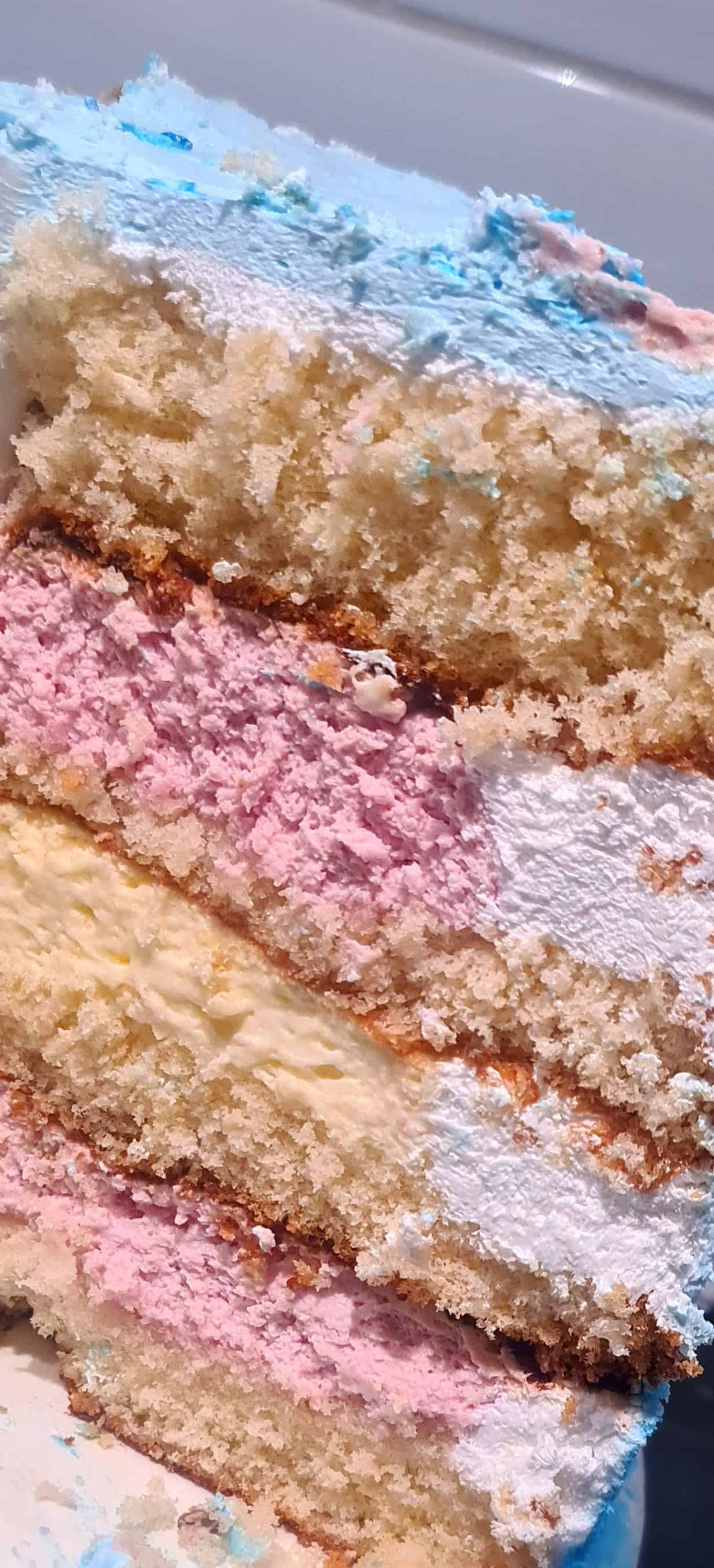 Fylld med: nedre tårtan består av 2 lager skogsbärsmousse och 1 lager vaniljkräm.