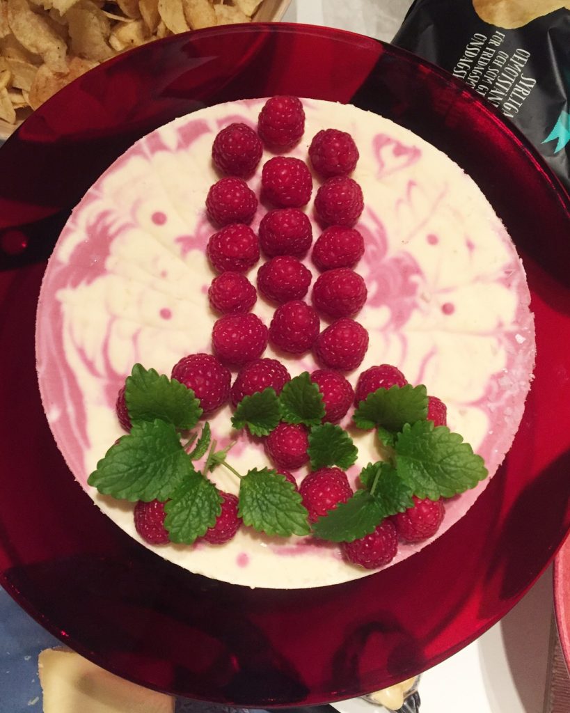 Frozen cheesecake base with mascaporne and whipped cream 2 full lemon juice and lemon zest!